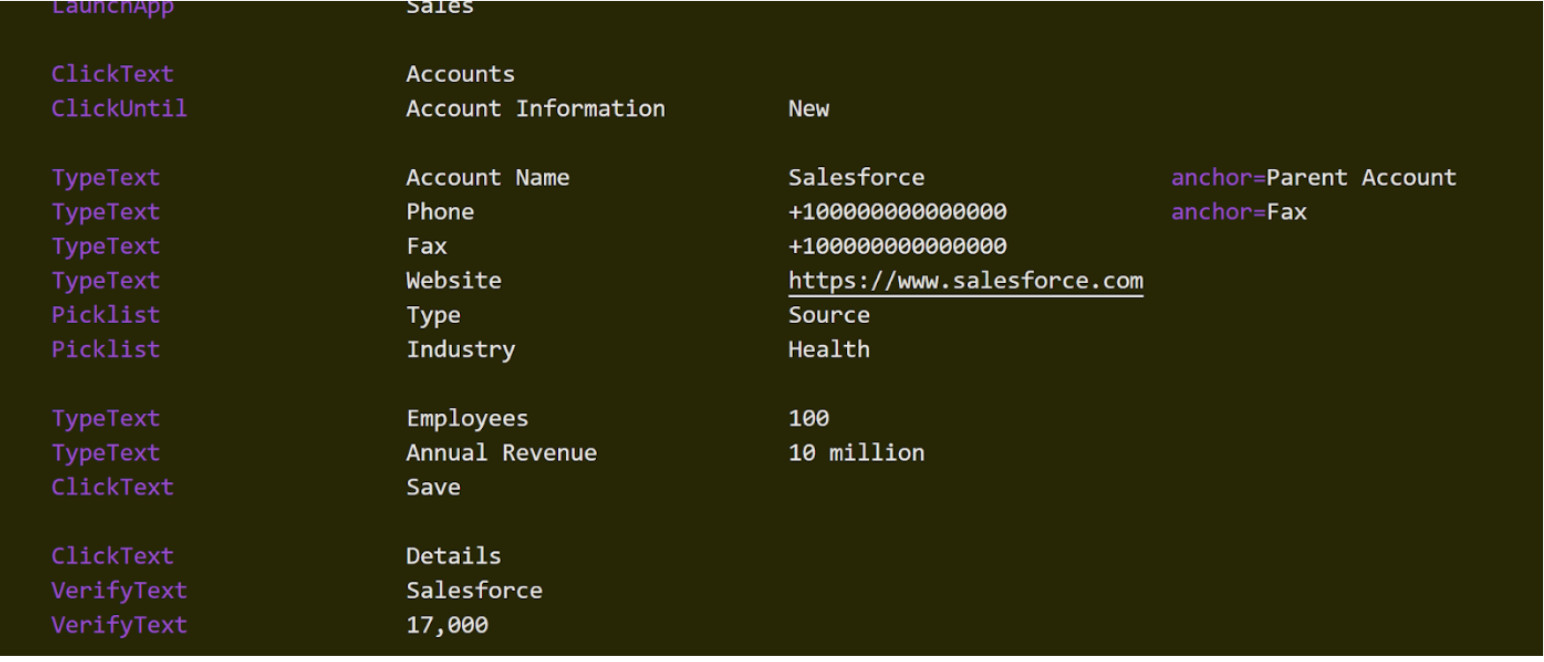- The automated test exponentially gets complicated with the length of the user scenario. Imagine covering the whole scenario of creating an account, contact, opportunity, adding products, setting up the price and editing quote lines; it’s easy to see that the number of lines of “ClickText”, “TypeText ” might cross triple digits.